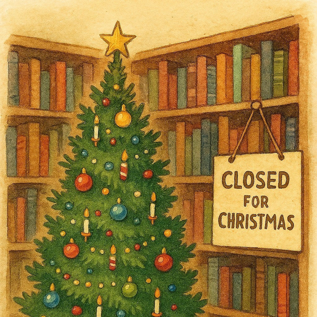 Od 23. 12. do 1. 1. 2026 bude knihovna zavřená. Děkujeme za pochopení a přejeme vám klidné sváteční dny plné pohody a hezkých příběhů. Opět se uvidíme 6. 1. 2026 – už se těšíme!